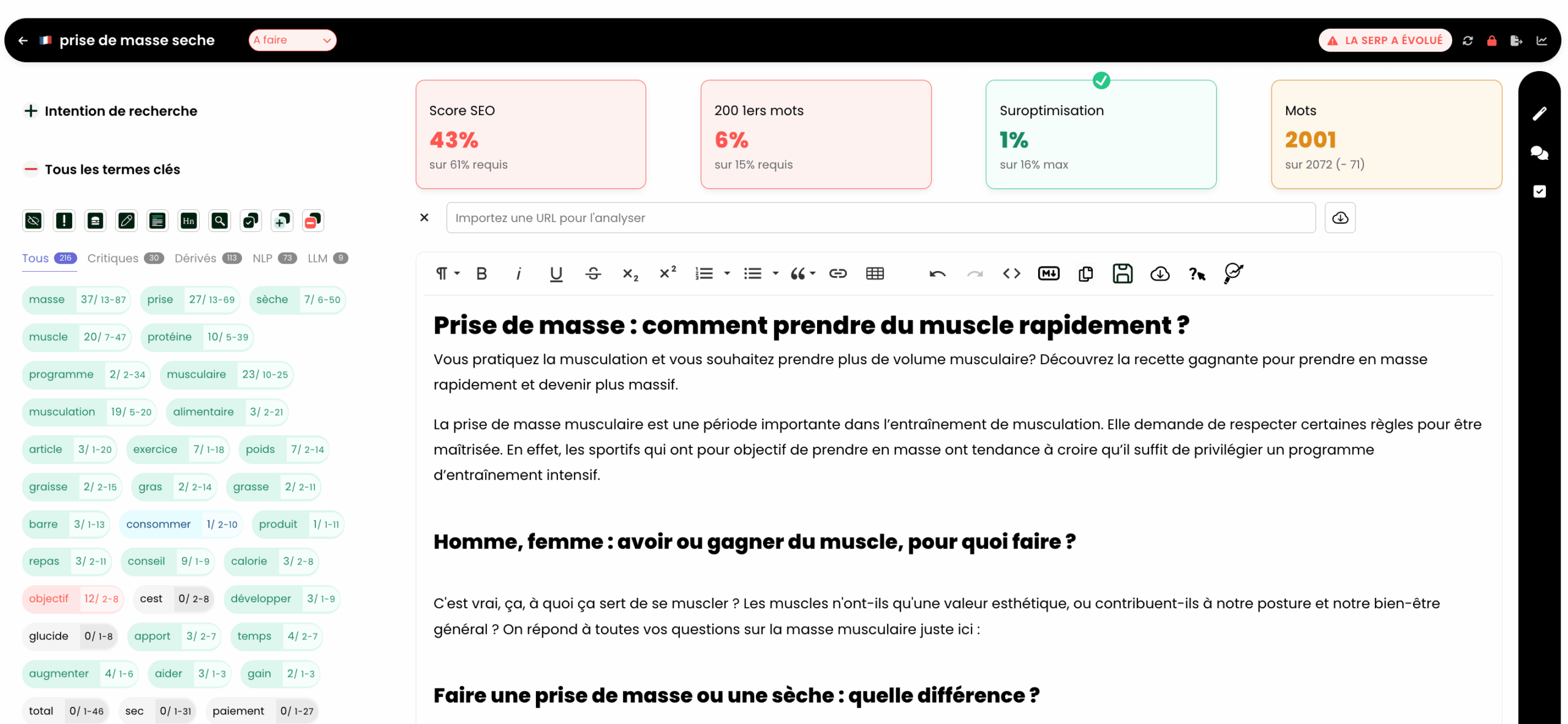 Concentrez-vous sur la création d’un contenu exceptionnel, Thot vous donne les mots-clés pertinents et le nombre d’occurrences requises.